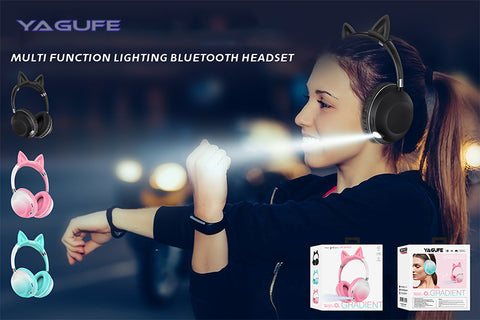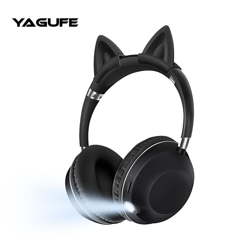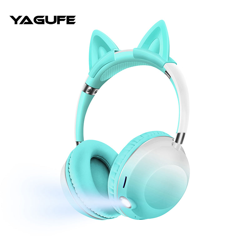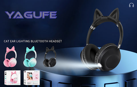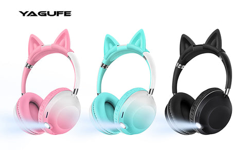 Auriculares Bluetooth con orejas de gato desmontables, auriculares inalámbricos con orejas de gato para niños y niñas, auriculares con luz RGB K62