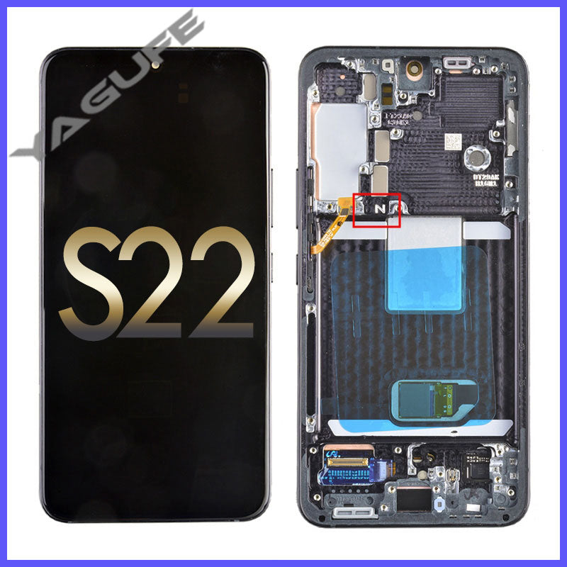 Conjunto De Digitalizador De Pantalla OLED YAGUFE Con Marco Para Samsung Galaxy S22 5G S901 (para La Versión Europea) (Paquete De Servicio) - Negro Fantasma
