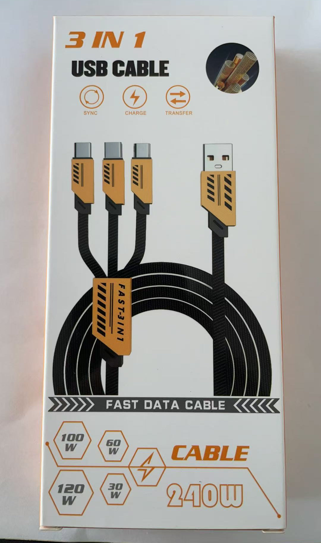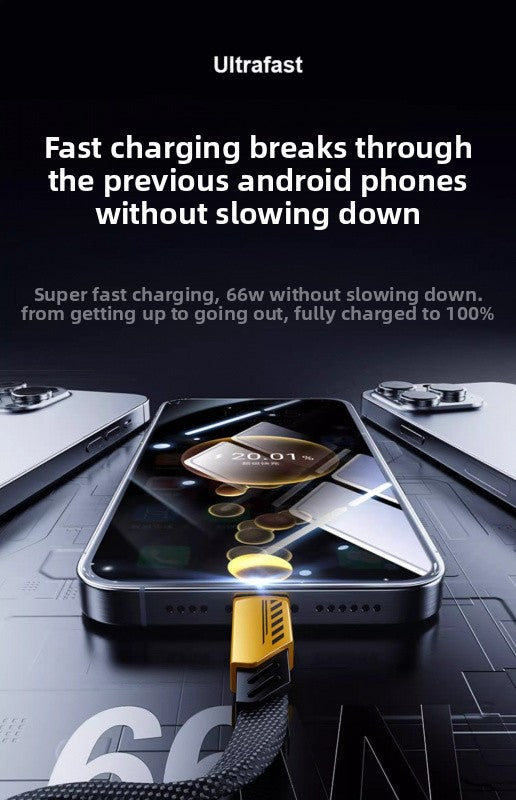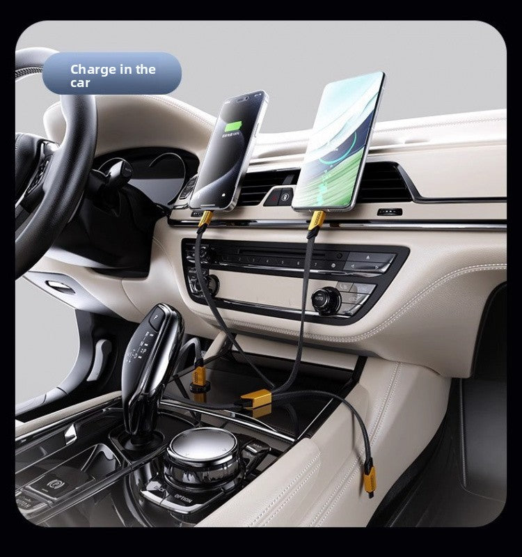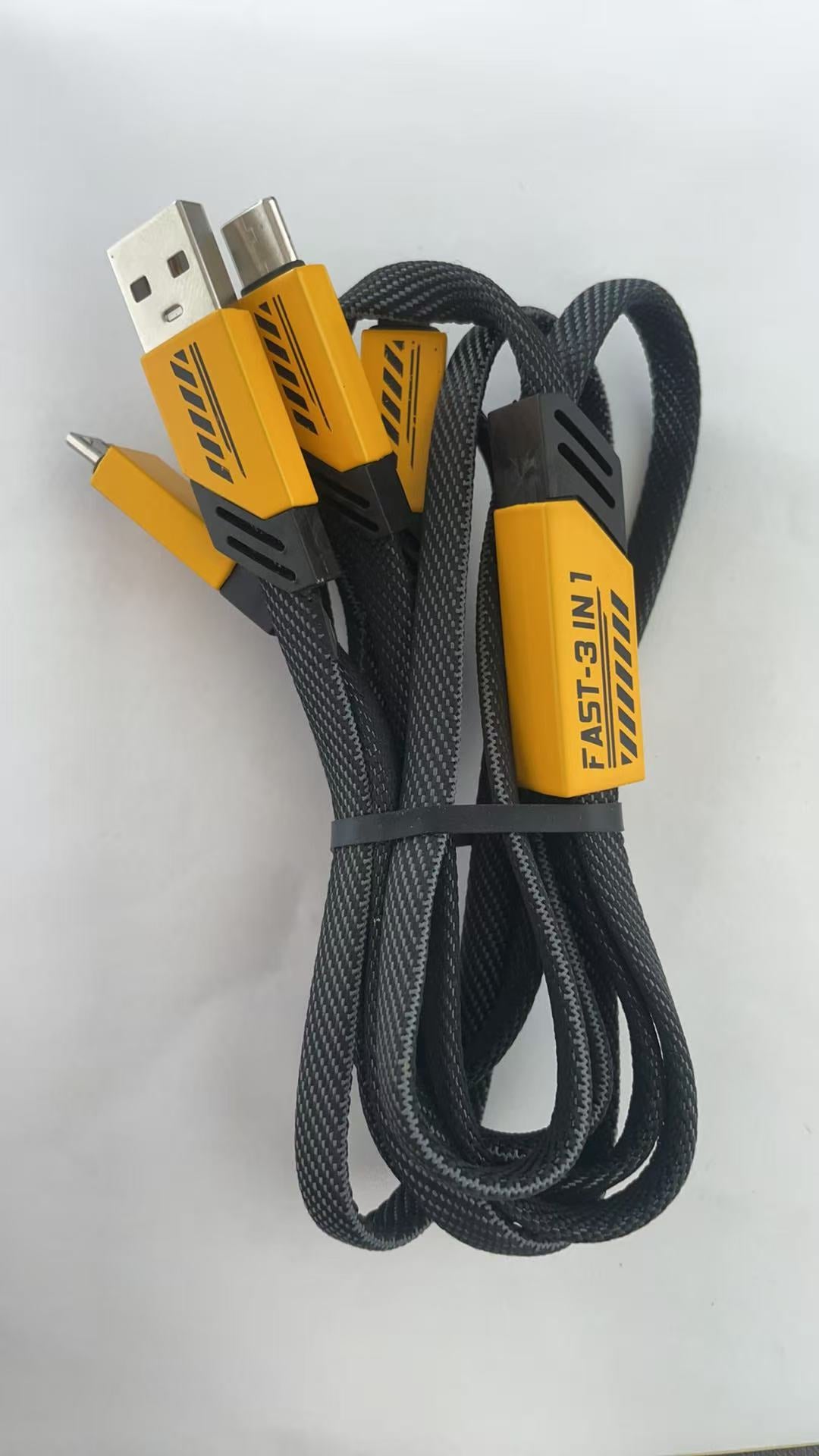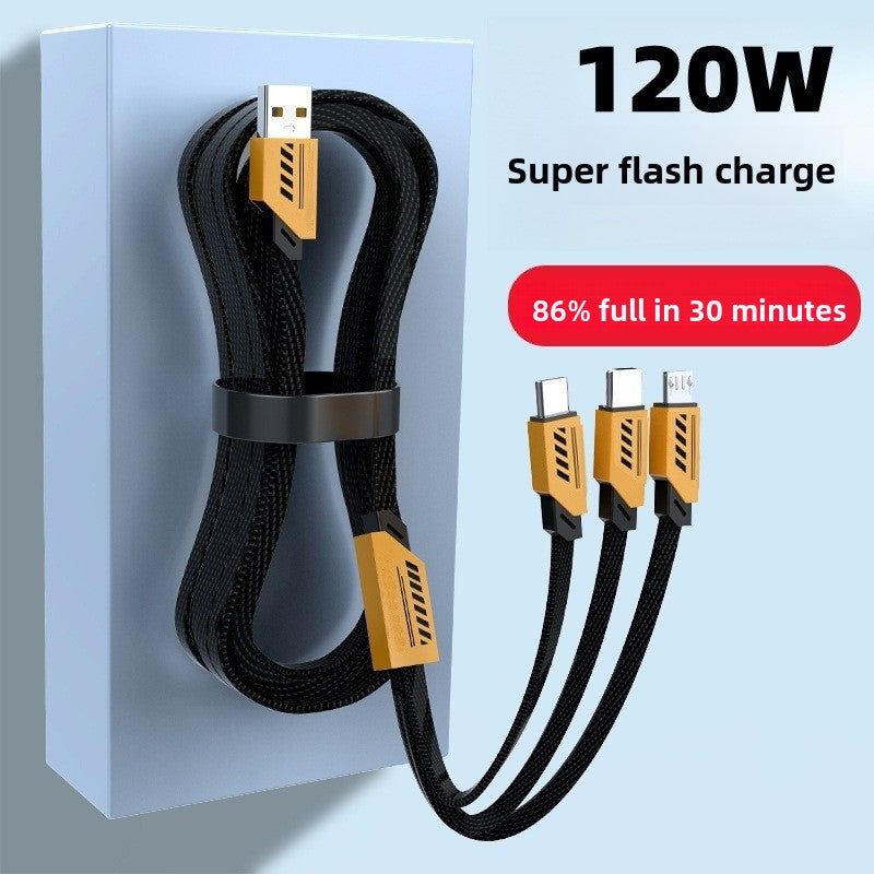 YAGUFE 120W Charger Cable Metal Braided Data Cable 3-in-1 Type-C Super Fast Charging Car Charger One-to-Three Universal