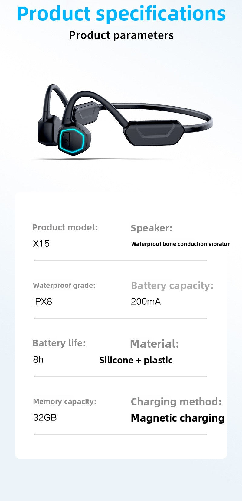YAGUFE Cross-Border Black Technology New Swimming Sports Night Running 8-Level Waterproof 32G Memory True Bone Conduction Bluetooth Earphones