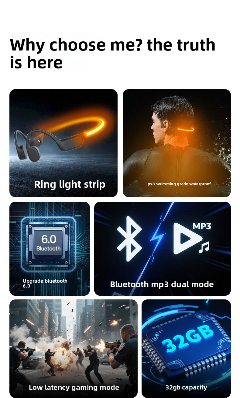 YAGUFE Cross-Border Private Model X500 LED Night Light Headphones with Bone Conduction, Built-in 32GB, Long Battery Life, Swimming Sports Headphones
