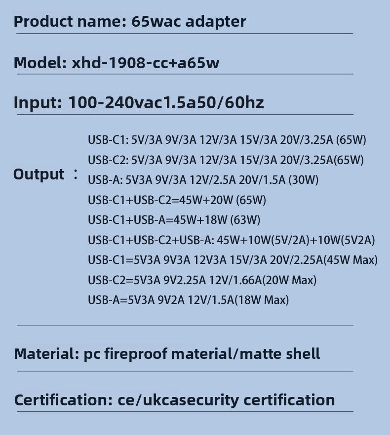 3-port PD65W EU Plug + US Plug + UK Plug + Indian Plug - $13.01 USD