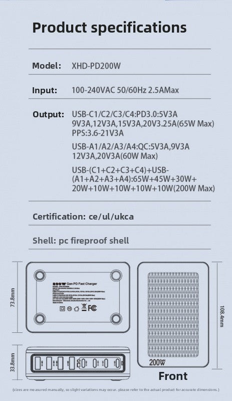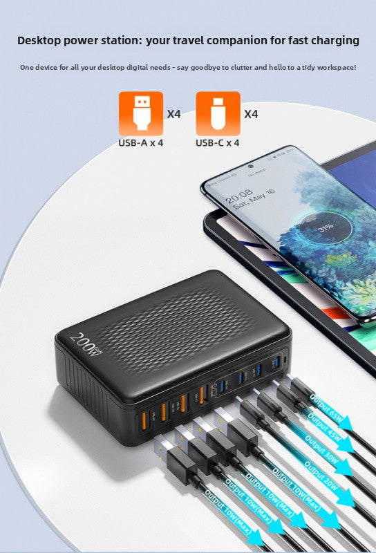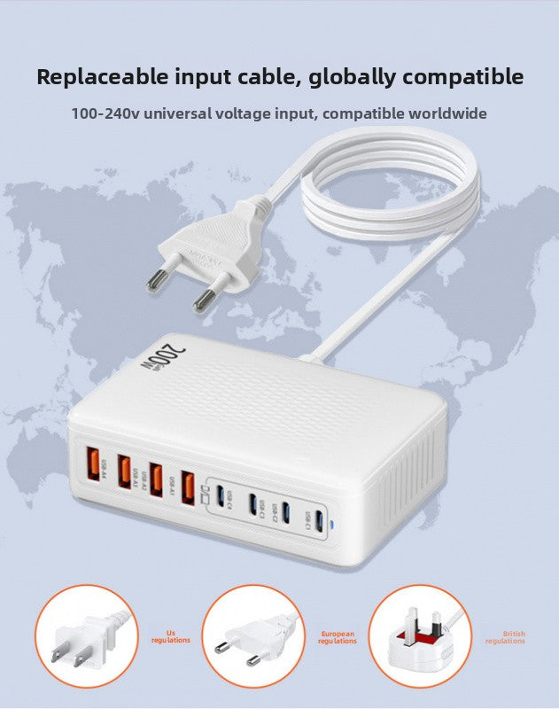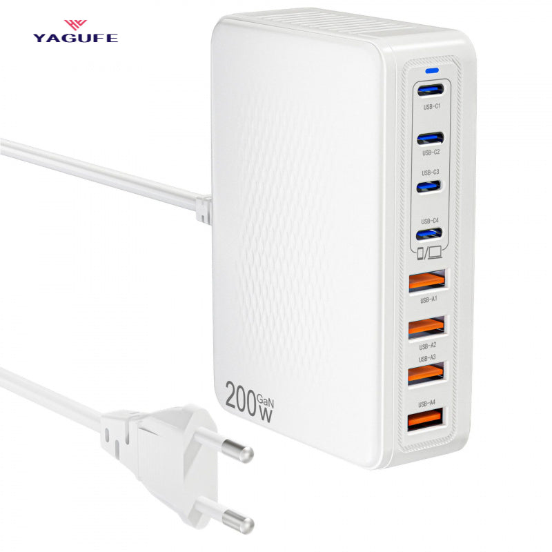 YAGUFE GaN 200W European Standard Multi-Port Charger Suitable for Computer Apple 16 Charger Samsung Charger CE Certification