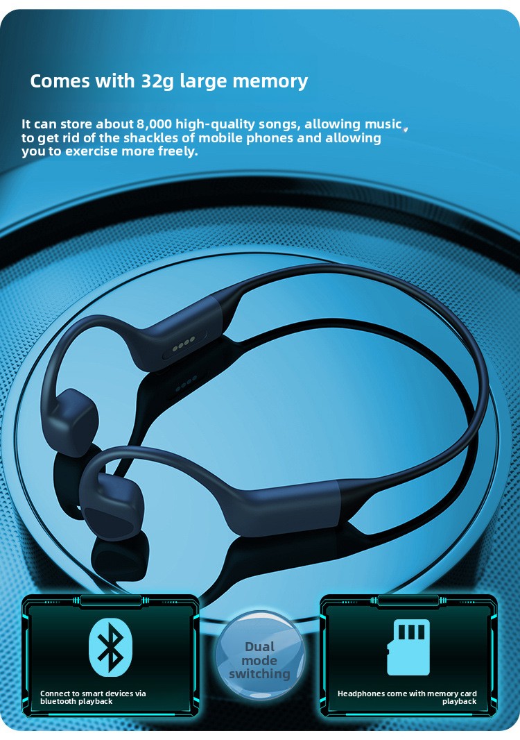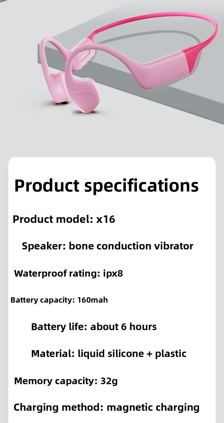 **YAGUFE Bone Conduction Headphones: x16 Liquid-Silicone Open-Ear Bluetooth Earbuds with 32GB Storage & Extended Battery for Swimming** Experience the future of audio with the **YAGUFE x16**, a revolutionary bone conduction headphone designed for athletes, swimmers, and outdoor enthusiasts. Unlike traditional earbuds that block ambient noise, these open-ear headphones use cutting-edge bone conduction technology to deliver crystal-clear sound while keeping your ears unobstructed. This ensures you stay aware of your surroundings, enhancing safety during runs, cycling, or even busy commutes. Crafted with a premium **liquid-silicone coating**, the YAGUFE x16 offers a featherlight, ergonomic fit that stays securely in place during intense workouts. Weighing just 32 grams, these headphones are virtually weightless, making them ideal for all-day wear. The **IPX8 waterproof rating** guarantees reliable performance even underwater, allowing you to enjoy music or podcasts while swimming laps or snorkeling. With **32GB of built-in storage**, the YAGUFE x16 doubles as a standalone music player, eliminating the need for a phone or Bluetooth connection. Store thousands of songs and access them instantly via intuitive controls. The **long-lasting battery** provides up to 10 hours of continuous playback on a single charge, ensuring your soundtrack keeps up with your longest adventures. Whether you’re hitting the gym, exploring trails, or diving into the pool, the **YAGUFE x16** combines innovation, comfort, and durability for an unmatched audio experience. Elevate your active lifestyle with this all-in-one solution that redefines what wireless headphones can do.