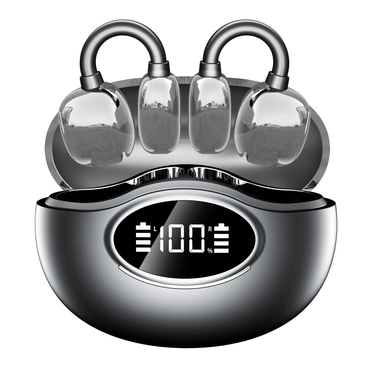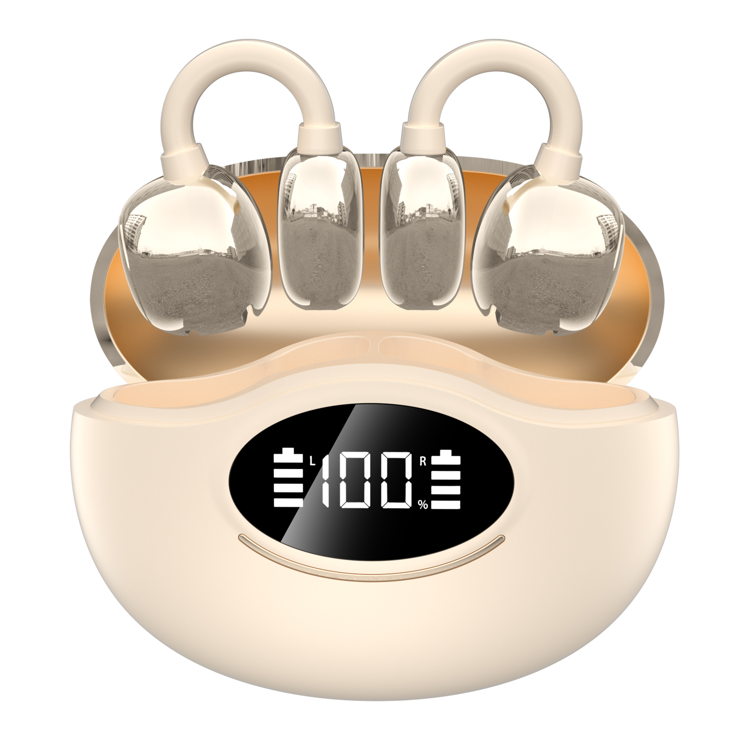 YAGUFE Open Ear Clip Wireless Earbuds Q86 Bluetooth 5.3, Sports Earphones Built-in Microphone with Earhooks & Ear Hook, Wireless Charging Case & Display, Waterproof Fitness Headphones for Running