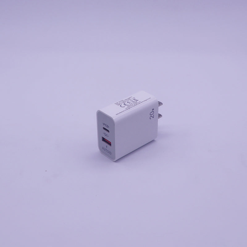 European/American/British Standard Synchronous Rectification Dual Panel A+C 20W INPUT:AC110V-240V 50/60HZ OUTPUT:TYPE-C PD20W USB 5V-3A/9V-2A/12V-1.5A