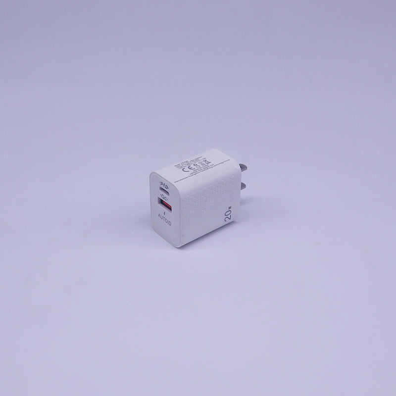 European/American/British Standard Synchronous Rectification Dual Panel A+C 20W INPUT:AC110V-240V 50/60HZ OUTPUT:TYPE-C PD20W USB 5V-3A/9V-2A/12V-1.5A