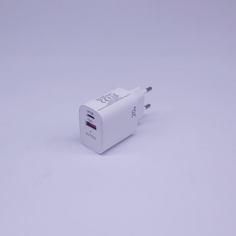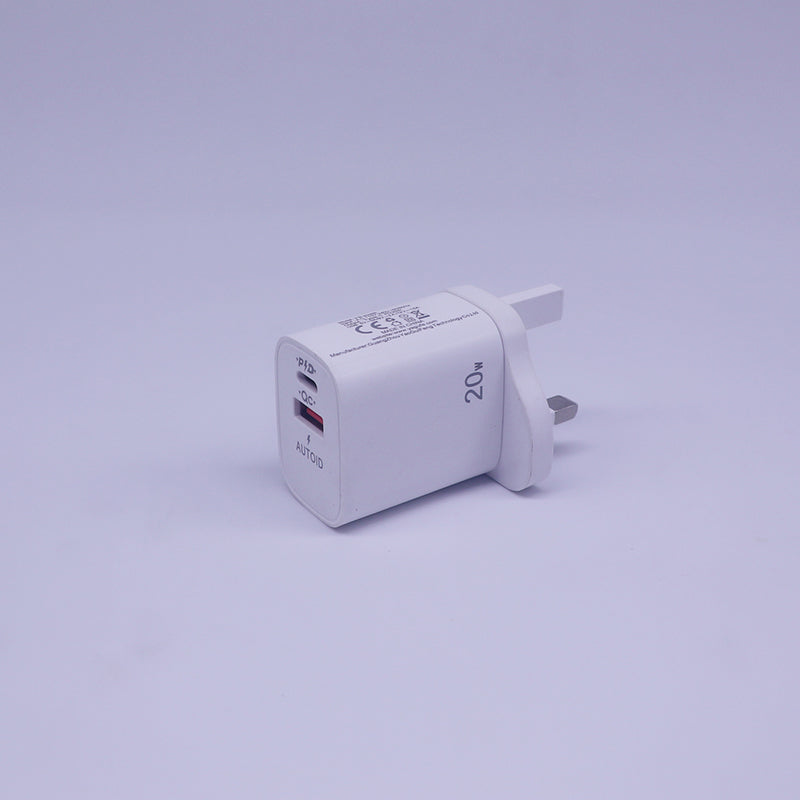 European/American/British Standard Synchronous Rectification Dual Panel A+C 20W INPUT:AC110V-240V 50/60HZ OUTPUT:TYPE-C PD20W USB 5V-3A/9V-2A/12V-1.5A