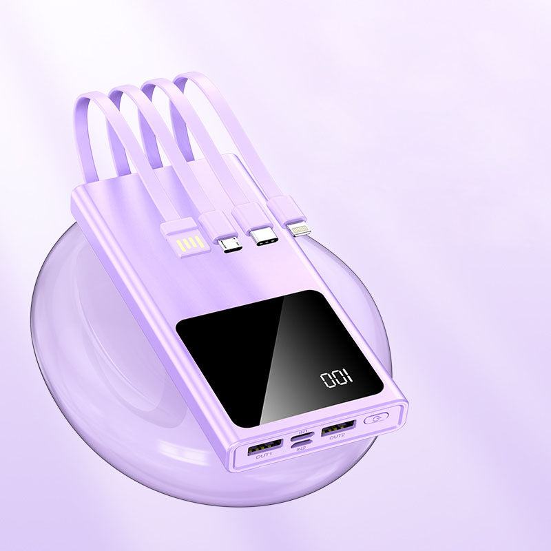 Fast Charging 66w Power Bank 10000mAh Portable Charger with Built in 4 Cables with LED Display Flashlight Phone Charger Power Bank Battery Pack