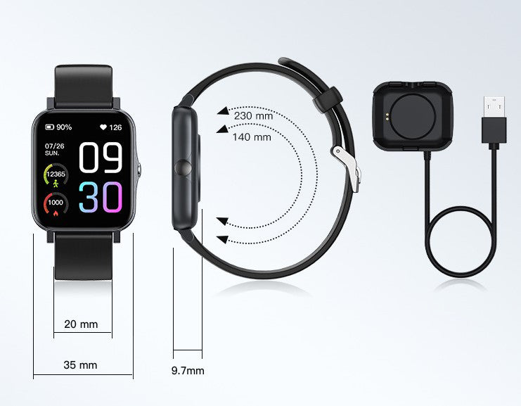 Product name: GTS2 smart watch (fitness tracker) Band color: 8 colors available Battery capacity: 230mAh, use 7 days Charging method: seat charger Screen: 1.69 inch TFT display, 240*280 pixels Warranty period: 1 year IP68 waterproof Product features: