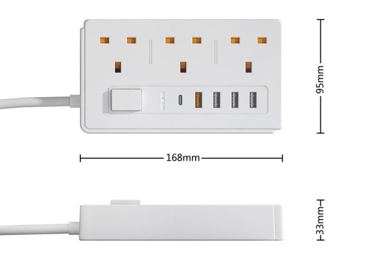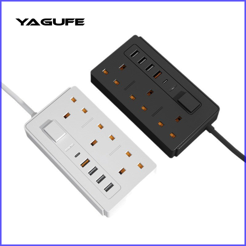 YAGUFE W035KT Power Strip Surge Protector Electric Plug Wall Mount Extension Cord with Multiple Outlets Charging Station Overload Protection for Home Dorm